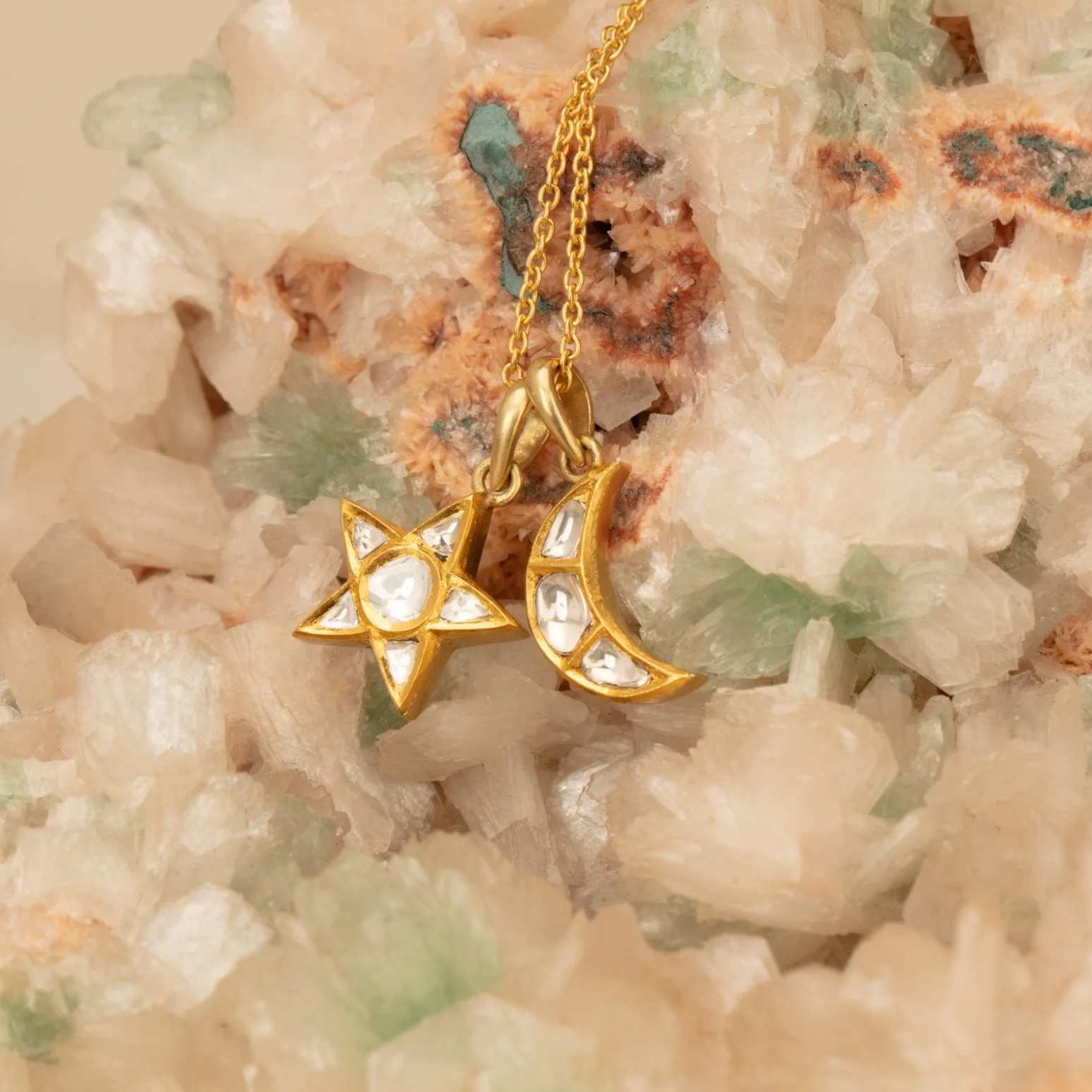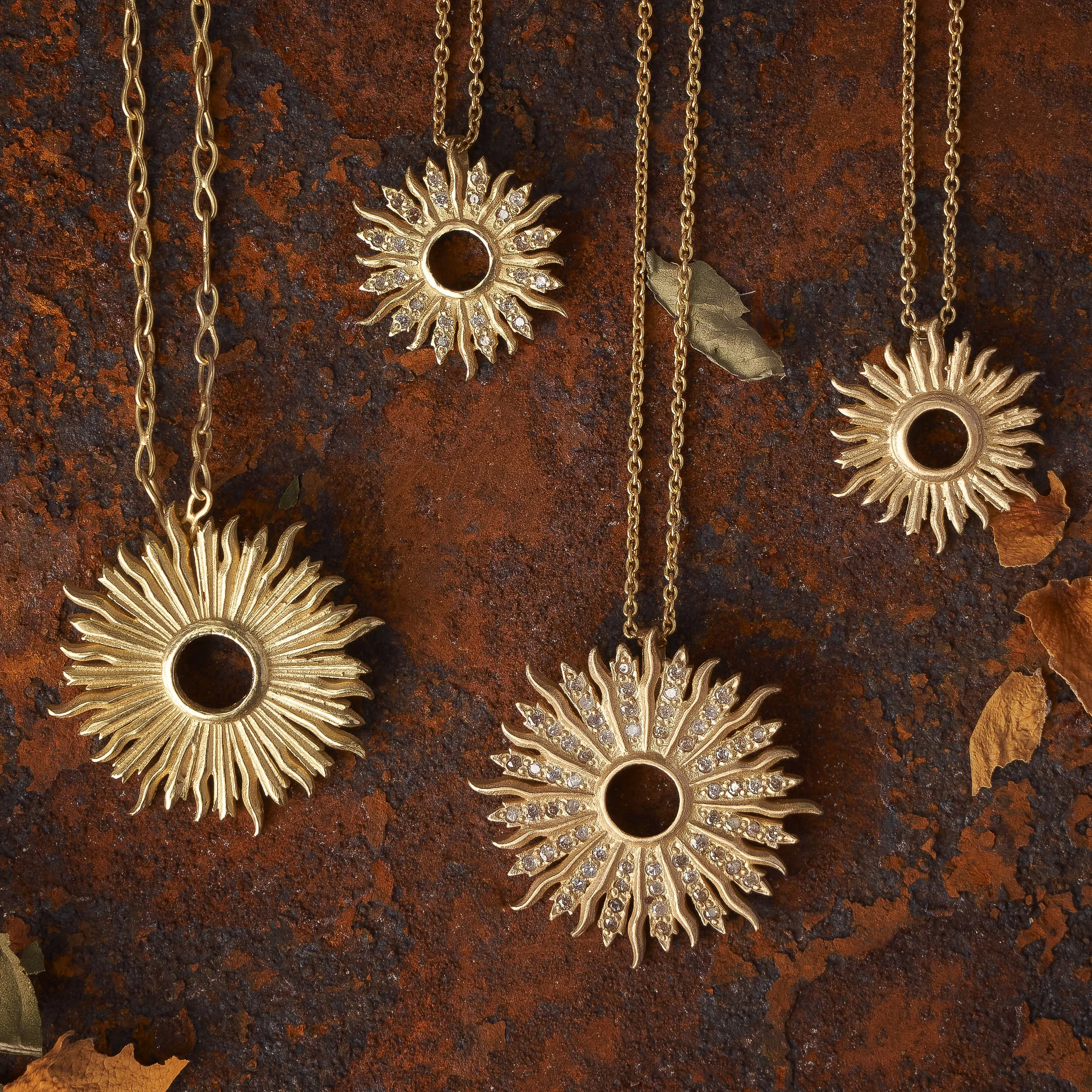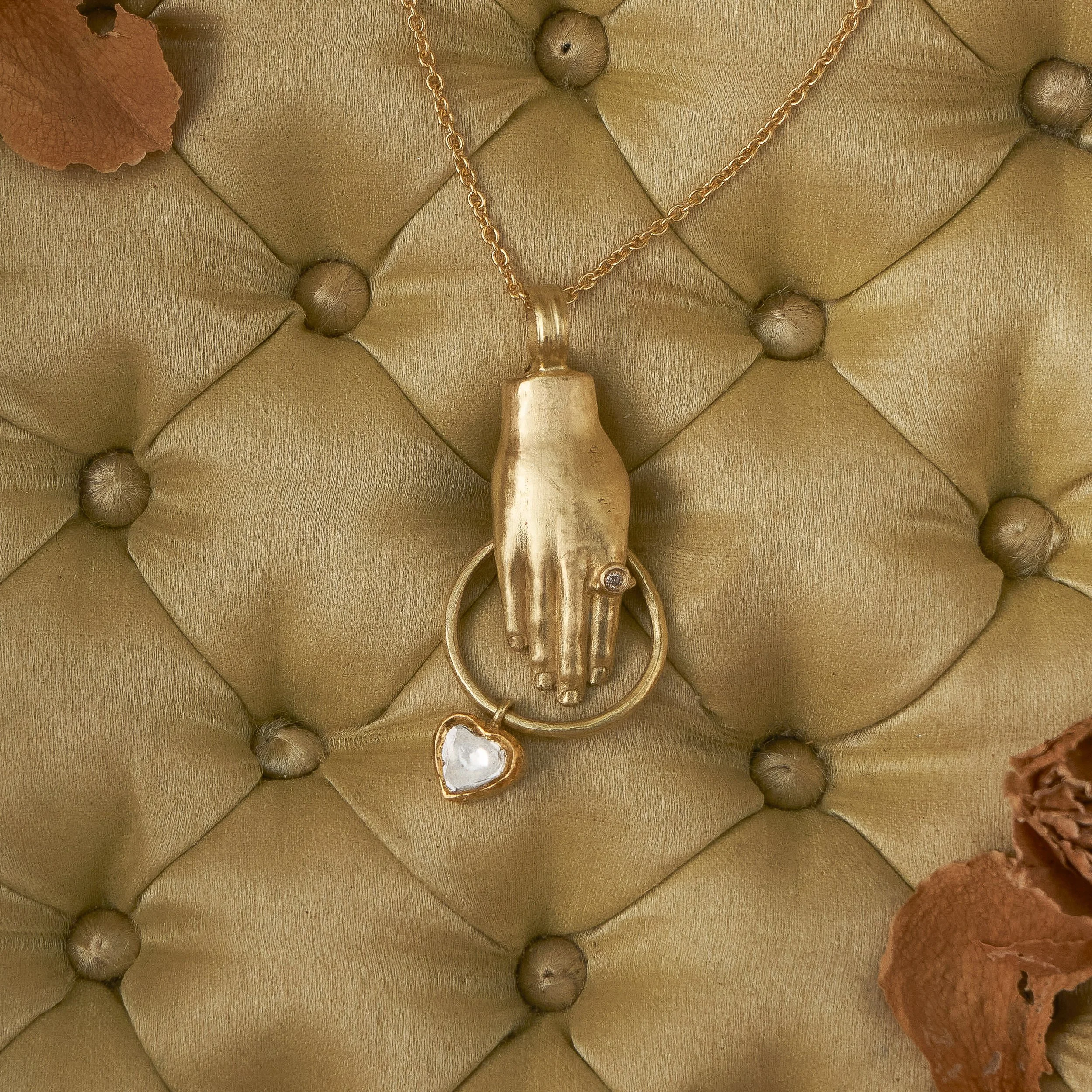 Sophie’s jewellery is handmade using her own mix of softly coloured 18kt gold and precious and semi-precious stones. She has been designing for over 15 years from her studio in West London and all her pieces are made by artisans in Jaipur, India. She is inspired by the whimsical and the symbolic; from the fantasy of fairy tales to tropes from myth and folklore.