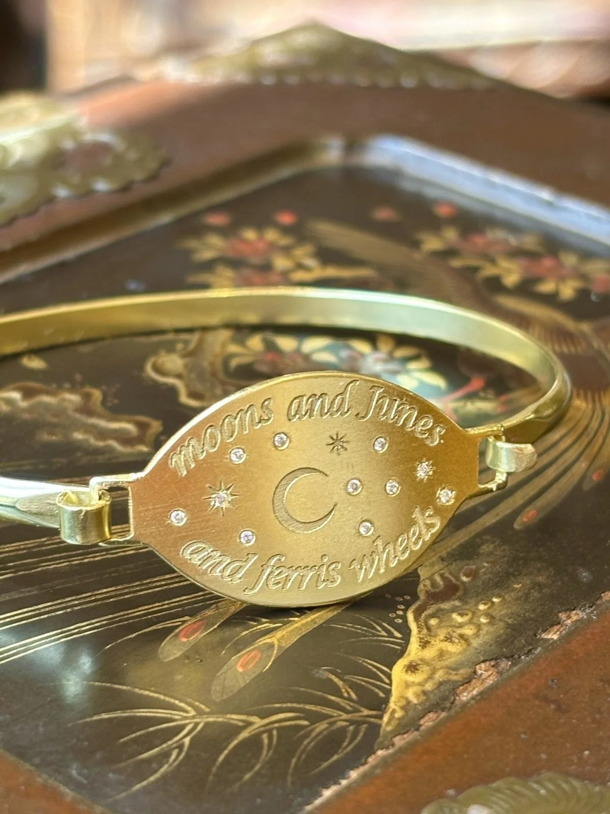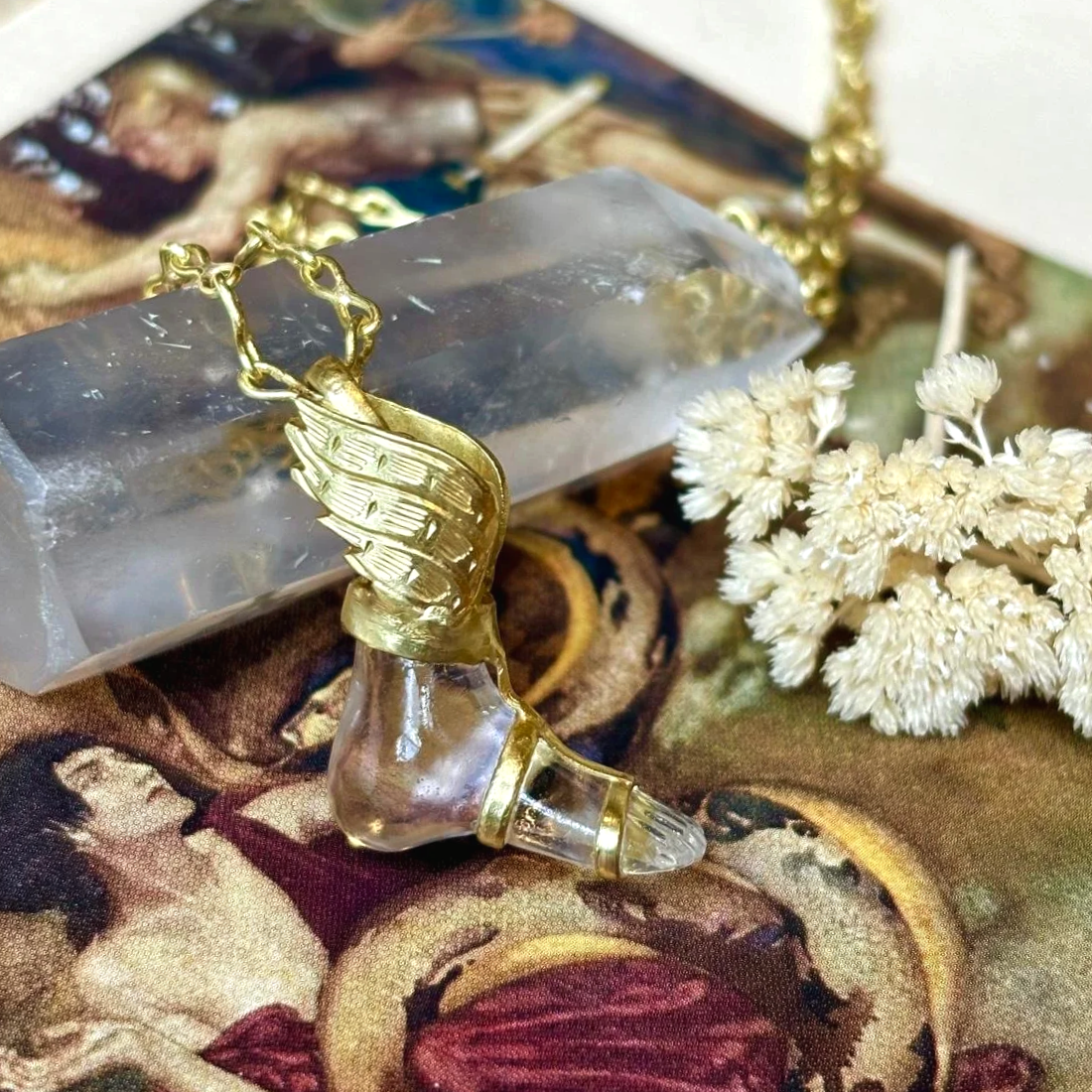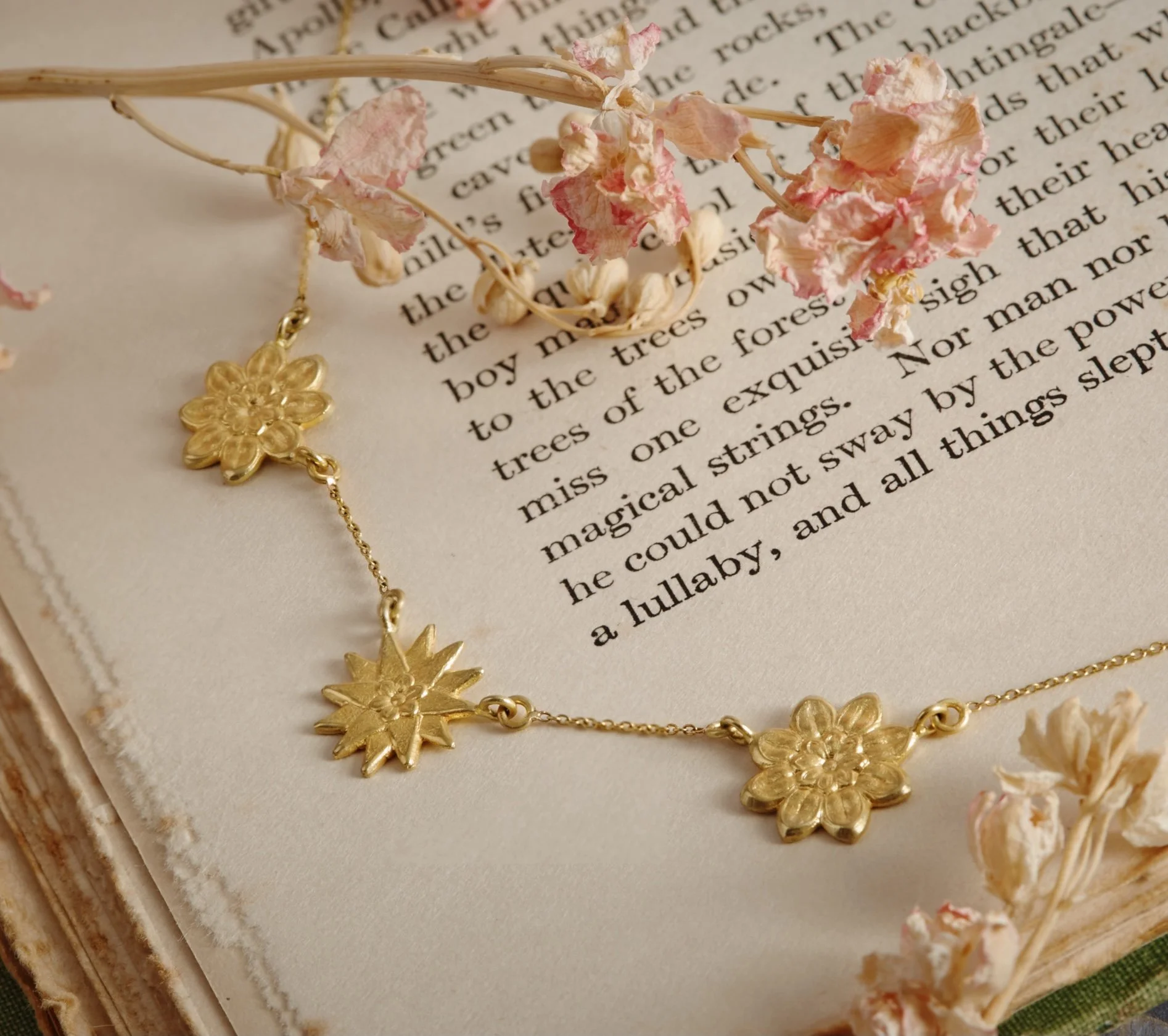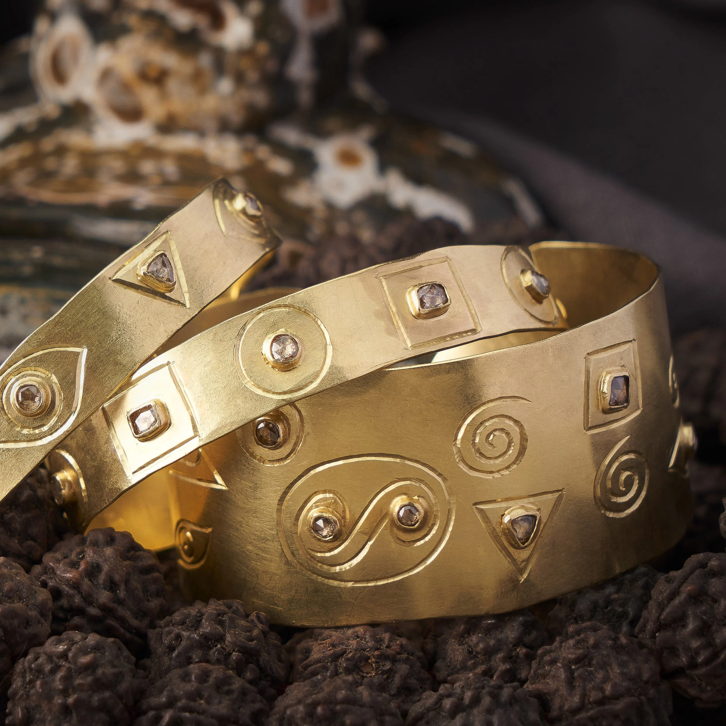 Sophie’s jewellery is handmade using her own mix of softly coloured 18kt gold and precious and semi-precious stones. She has been designing for over 15 years from her studio in West London and all her pieces are made by artisans in Jaipur, India. She is inspired by the whimsical and the symbolic; from the fantasy of fairy tales to tropes from myth and folklore.