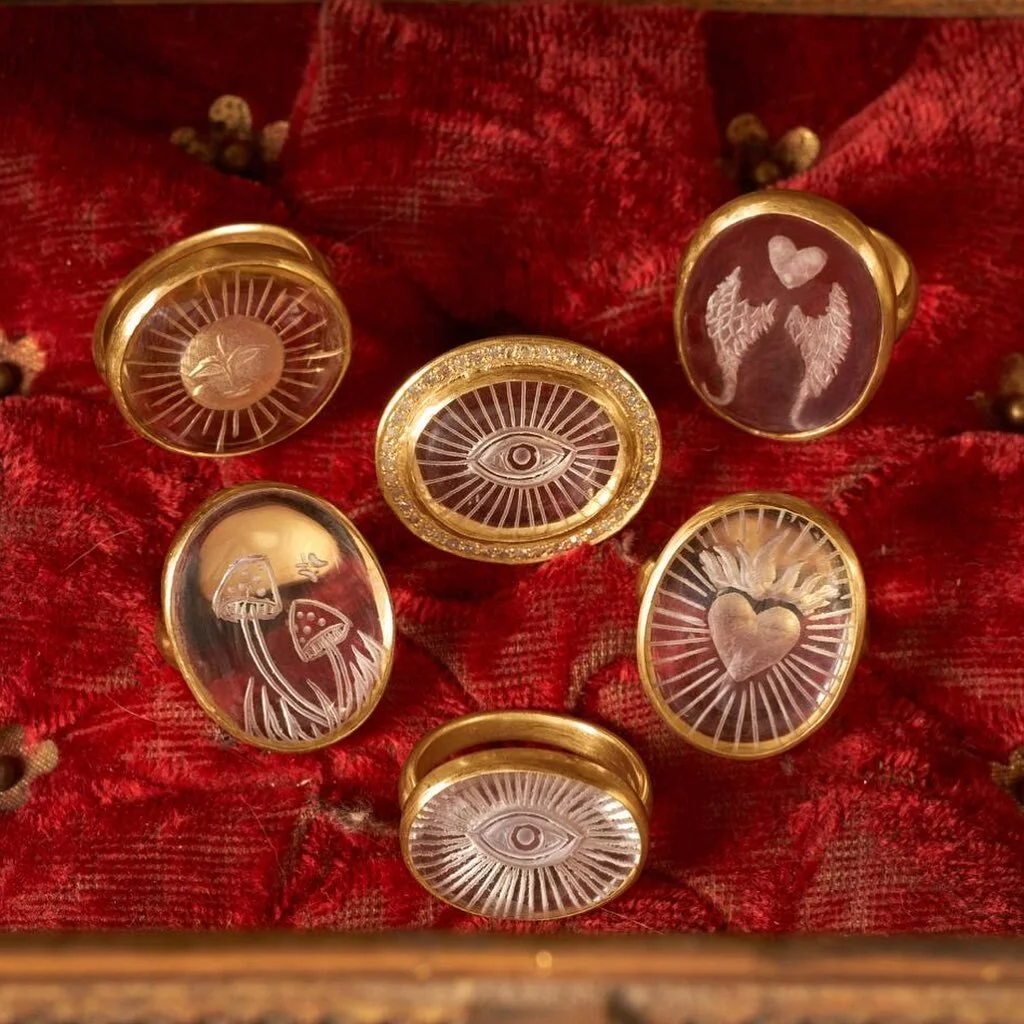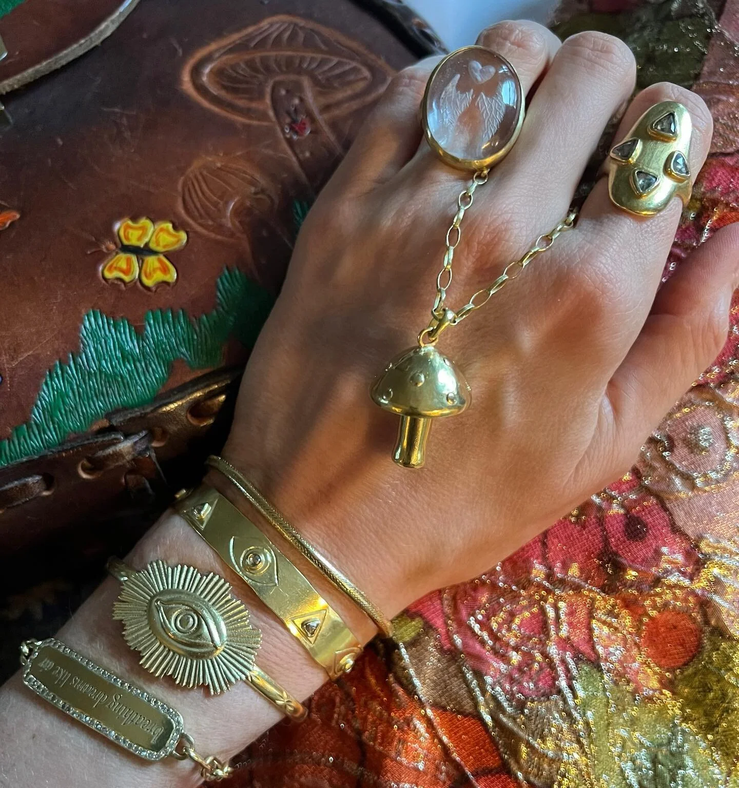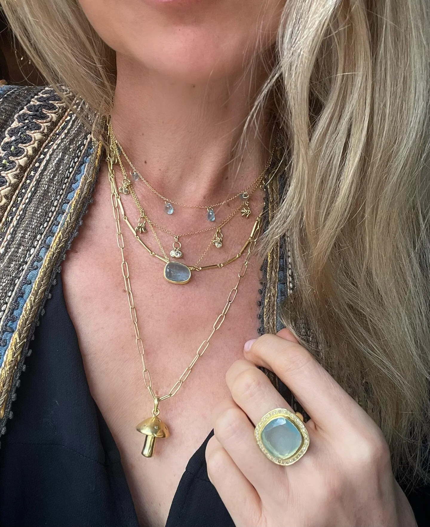 Working with the most accomplished artisans in India and South East Asia, the aesthetic of Sophie’s design is soft and bohemian, delicate yet bold, and with a nod to the antiquities and religious symbolism that she encounters on her frequent travels. She sources only the highest quality precious stones and works with the finest 18ct gold.